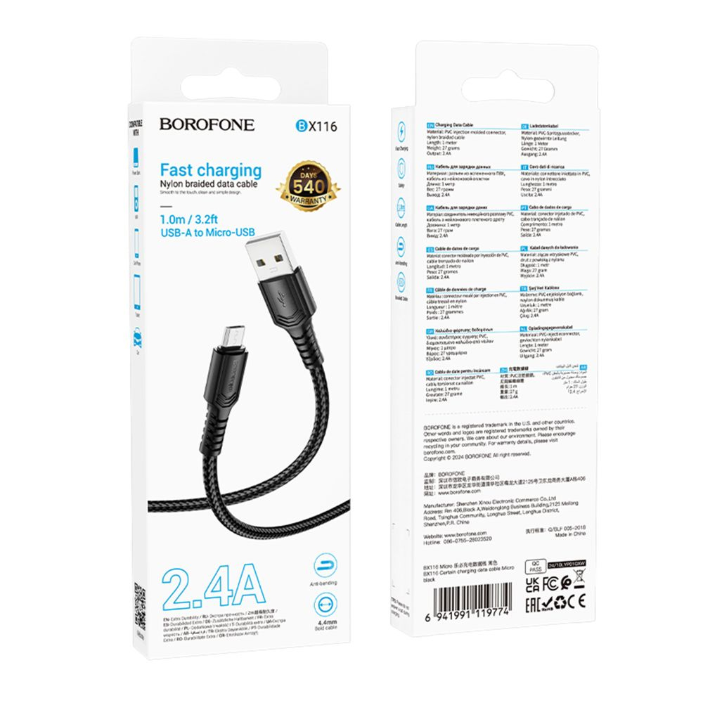 Кабель зарядки Borofone BX116 Certain USB A - Micro 2.4A 1м Чорний