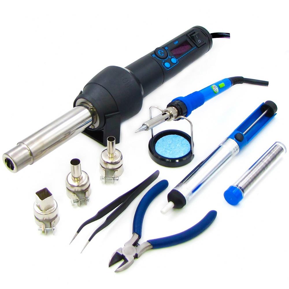 Паяльний набір в кейсі WEP 8858-I & 947-III (паяльник 947-III, термофен 8858-I, інструменти та розхідники)
