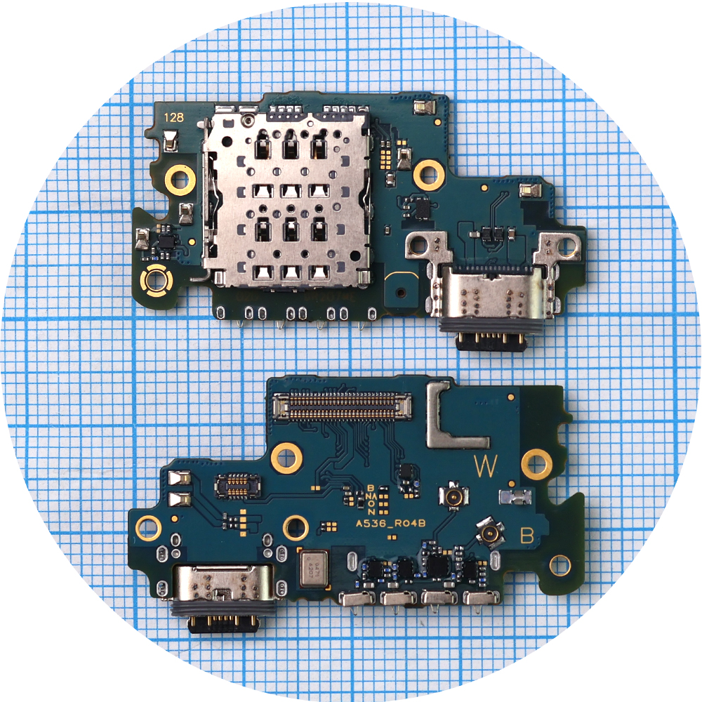 Шлейф Samsung Galaxy A53 5G A536B з роз'ємами зарядки та Sim-карти з мікрофоном - нижня плата (AAA)