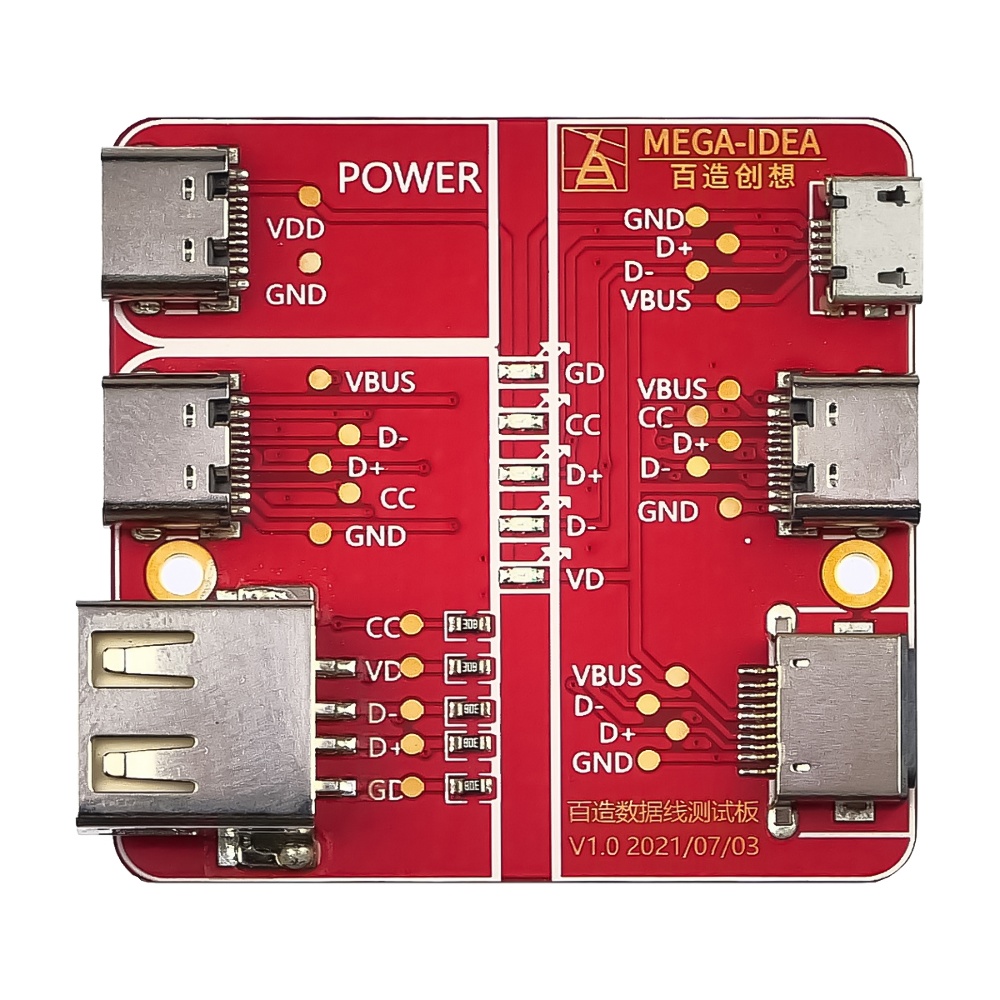 Тестова плата Mega-Idea для перевірки USB кабелів Lightning/ Type-C/ Micro