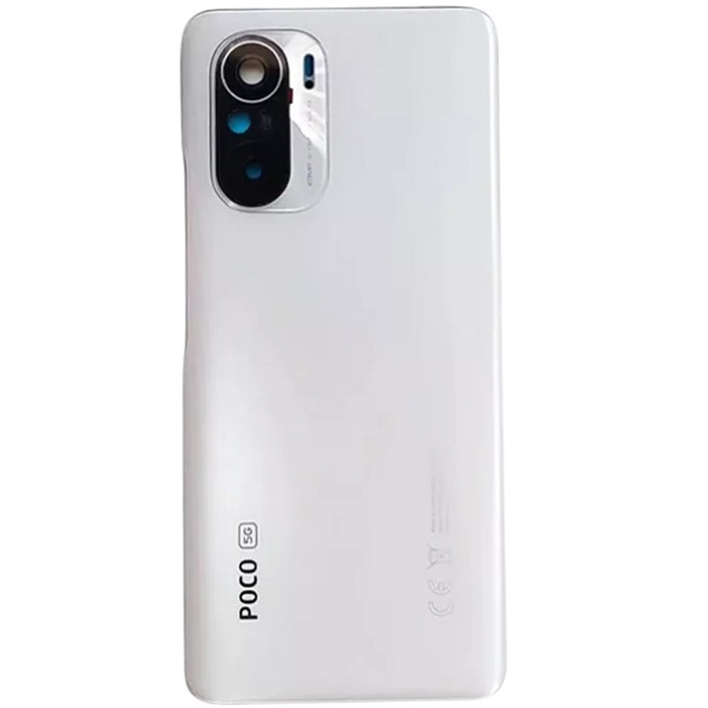 Задня кришка Xiaomi Poco F3, Redmi K40 (біла зі склом камери - логотип Poco)